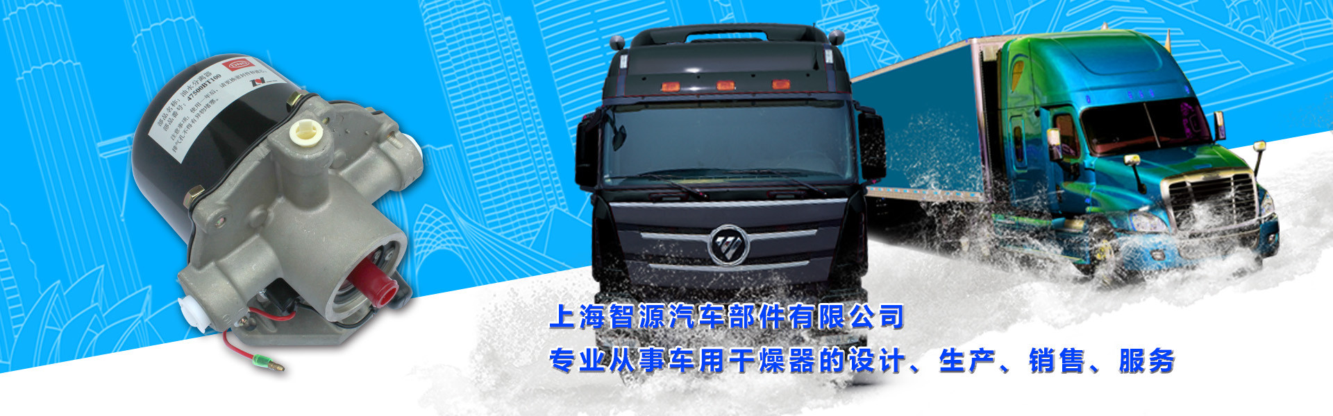 ??上海智源汽車部件有限公司是一家專業從事車用空氣干燥器和油水分離器的設計、生產、銷售、服務的企業。產品分四大系列,共24個品種。